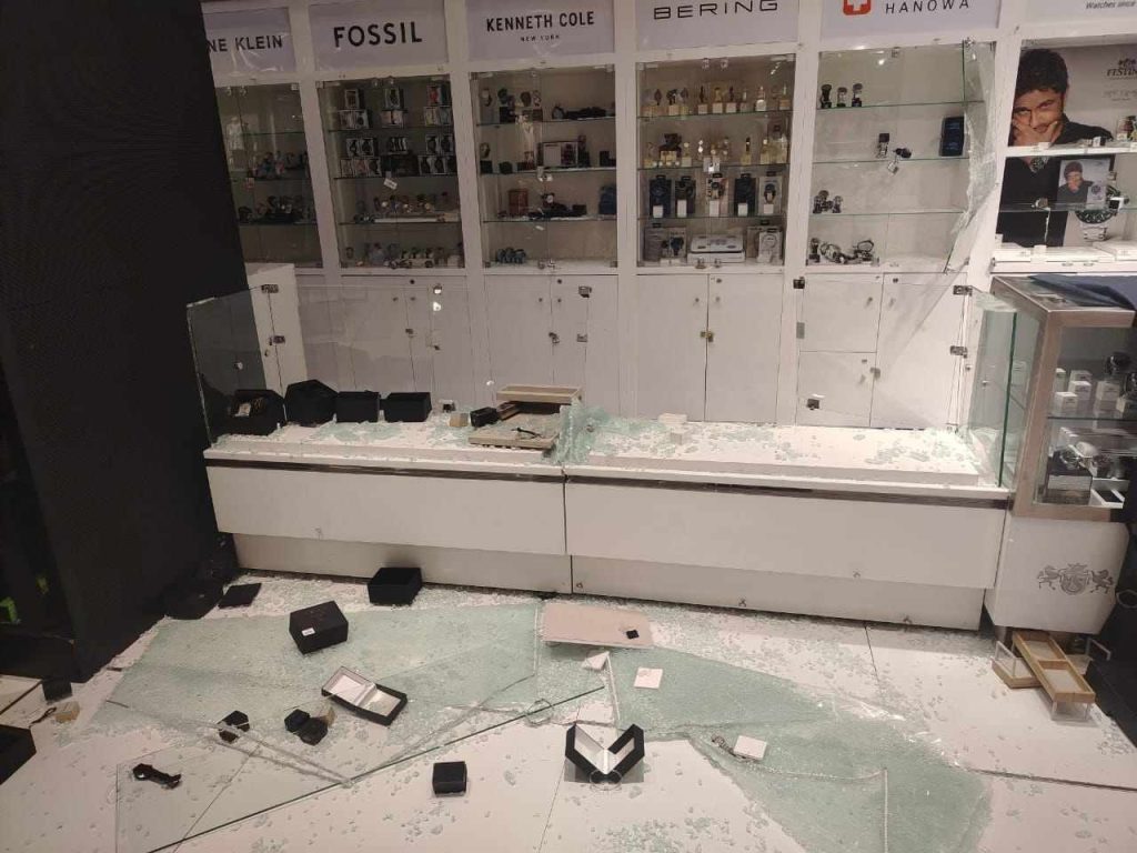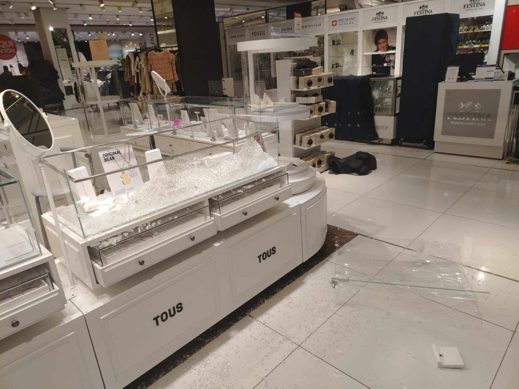 Una vez en el interior, los delincuentes se dirigieron específicamente a las secciones de óptica, relojería y joyería, desde donde sustrajeron diversas especies de alto valor. Todo esto quedó registrado en las cámaras de seguridad, donde se observa a los seis sujetos actuando coordinadamente.