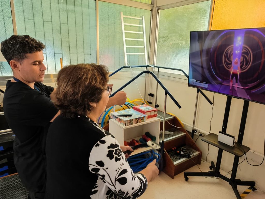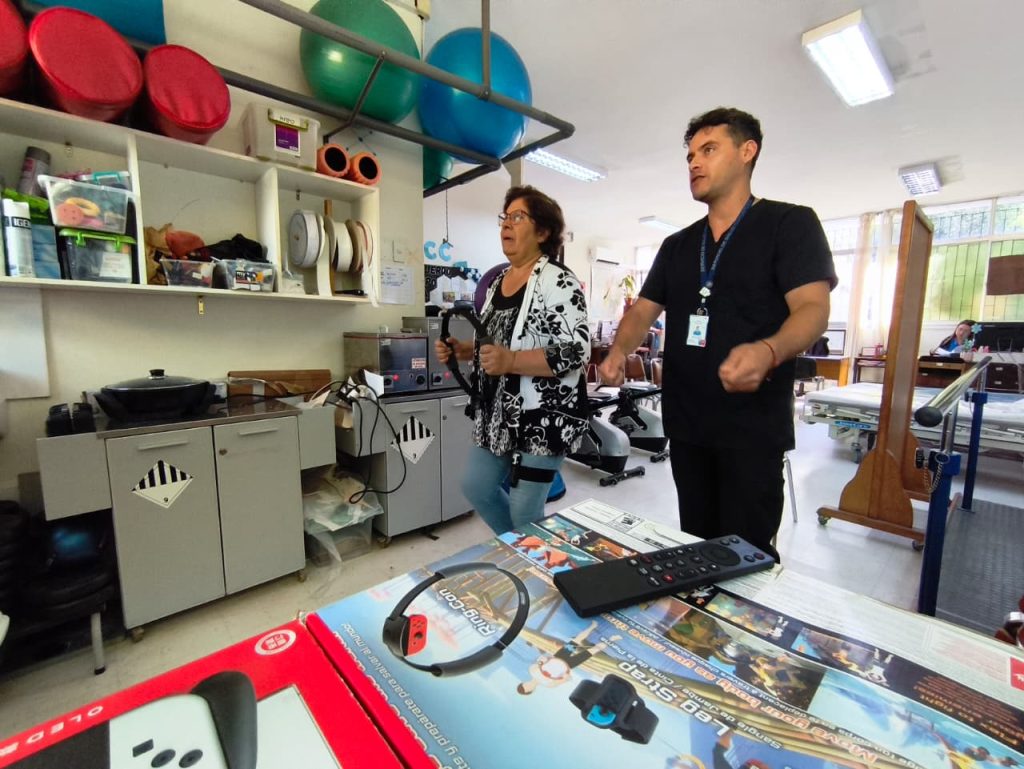 Este equipo consta de un televisor y un pedestal móvil que les permite también la facilidad de hacer educaciones y otro tipo de estrategias para poder avanzar en otros aspectos. “Lo trajimos porque ha demostrado buenos resultados a nivel científico. Estimula de mejor manera aspectos como la fuerza, el balance, el control motor de nuestros pacientes en general, dijo Pablo Tornería.